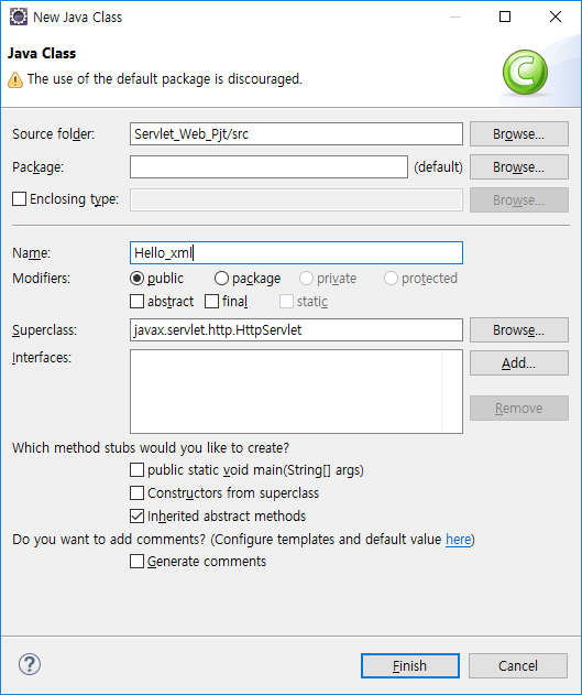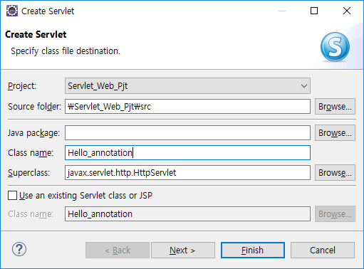 프로젝트 우클릭 new - servlet을 선택해준다