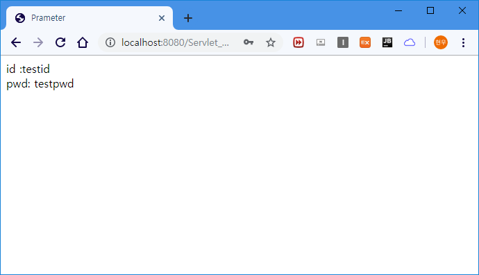 28, 29 : 파라미터 이름으로 값을 추출하는 과정이다 위에 작성한 html에서 id는 name = "id"로 지정했었고, PWD는 name = "pwd"로 지정하였기 때문에 request.getParameter("이름") 으로 추출한다.